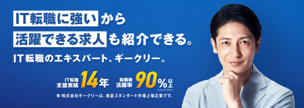 | Geekly(ギークリー) | 37,000件以上 | 首都圏・関西圏中心 | IT・Web・ゲームに特化 | スピード対応・年収診断 | 公式サイト |