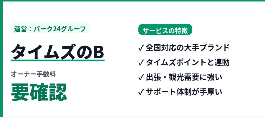 • 大手ブランドの安心感が欲しい人タイムズのB(パーク24グループ)
