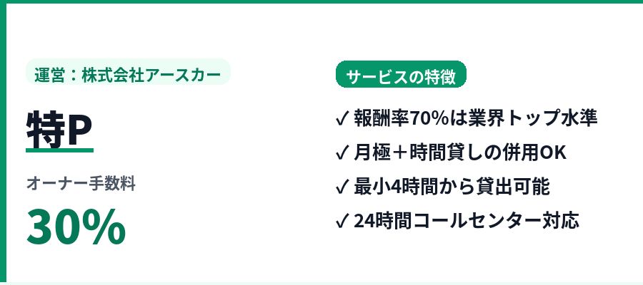 ― 業界最安水準の手数料で、貸し出した売上のうち70%をオーナーが受け取れる収益重視型サービス。